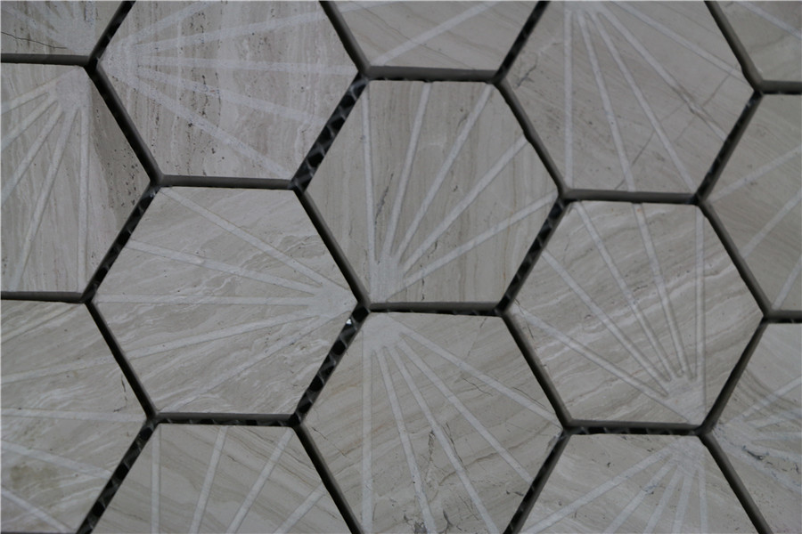 Description:Hexagon Light Wooden Craving Marble Mosaic